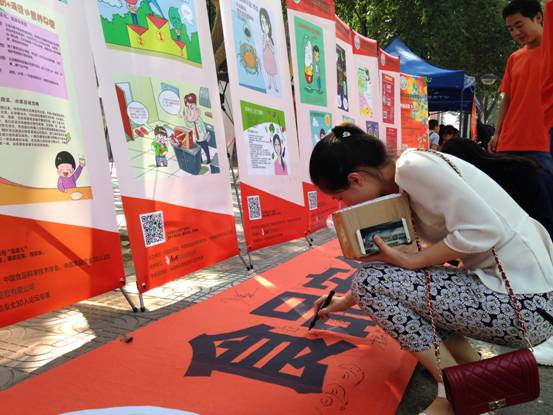 同期,在西北大学校园里,也掀起了食品安全的科普热潮。来自全国各高校的前期优秀参赛示范作品的展示,吸引了同学们纷纷驻足观看,不少同学用一句话秒拍的方式表达了自己对食品安全宣传的热情,“人人都是自愿者,食品安全我助力”,很多同学都报名参加志愿者队伍,食品安全的“新食尚”热潮在校园蔚然掀起。