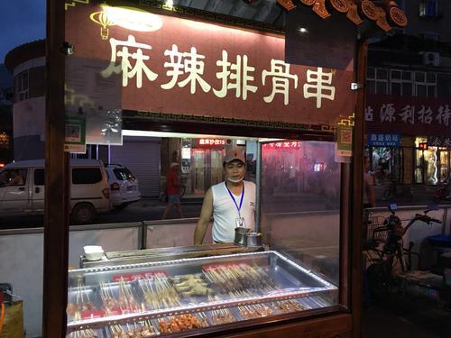 在摊点前驻足,可以看到每个摊点均将登记备案卡、健康证公示在显著位置,并备有防鼠、防蝇、防尘设施,摊主严格按照“三小”行业着装要求,佩戴了帽子和口罩,防止对食品造成污染。不仅如此,夜市里每隔一段距离就放置了带盖垃圾桶——这些是沈阳市小摊贩公示经营区域和时段集中治理工作的一个缩影。
