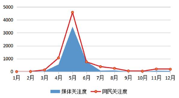 从整体关注度看,如图1所示,舆情呈现“山峰式”发展特征,媒体关注度与网民关注度走势一致。