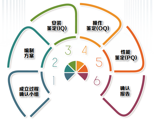 GHTF(The Global Harmonization Task Force,全球协调工作组)过程确认指南中将实施过程确认的步骤描述为:成立确认小组、编制方案、安装鉴定(IQ)、操作鉴定(OQ)、性能鉴定(PQ)、确认报告。下文将按照该步骤介绍过程确认的实施过程。
