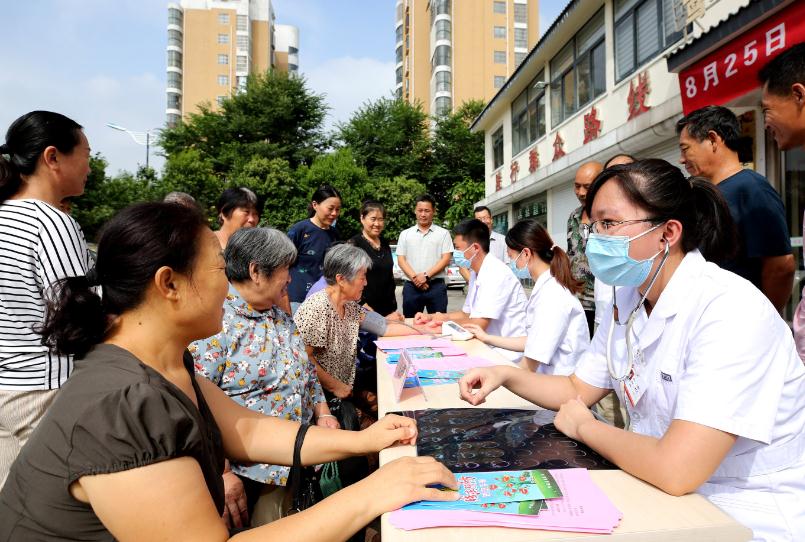 图为8月25日,峄城区残疾人联合会组织医务人员走进鹭鸣山庄社区为居民进行义诊宣传。(吉喆 摄)