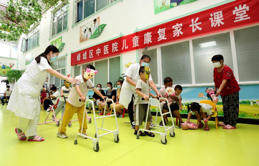 图为8月25日,在峄城区中医院,康复治疗师对残疾儿童进行康复训练。据悉,峄城区残疾人联合会为家庭困难的残疾儿童提供了免费康复治疗。(吉喆 摄)