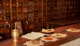 四号车厢主题是中药,展示中药的历史与文化,车厢内包选用了古朴的原木色和棕色搭配,给人以自然、经典的视觉印象。展示的展品包括“药材真伪辨别”“照方抓药”“道地药材”“中医诊治”“中药的故事”等,车顶是关于中药发展历史和文化的展示。