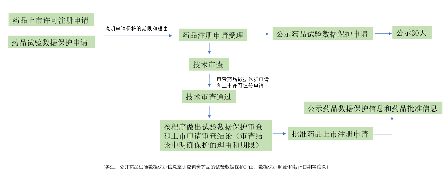 2017年5月12日,原国家食品药品监管总局公开征求《关于鼓励药品医疗器械创新保护创新者权益的相关政策(征求意见稿)》(2017年第55号公告),其中明确完善药品试验数据保护制度,规定:申请人在提交药品上市申请时,可同时提交试验数据保护申请。对批准上市的创新药,给予6年数据保护期;既属于创新药又属于罕见病用药、儿童专用药,给予10年数据保护期;属于改良型新药的罕见病用药、儿童专用药,给予3年数据保护期;属于创新的治疗用生物制品,给予10年数据保护期。挑战专利成功和境外已上市但境内首仿上市的药品,给予1.5年数据保护期。在欧洲、美国和日本获准上市后1年内在中国提出上市申请和数据保护的新药,给予相应类别数据保护期;超过1年到中国提出上市申请的,按超出时间扣减数据保护期时间;扣除后不足1.5年的,给予1.5年数据保护期。数据保护期自药品批准上市之日算起。在数据保护期内,审评机构不再批准其他申请人同品种上市申请,申请人自行取得的数据除外。