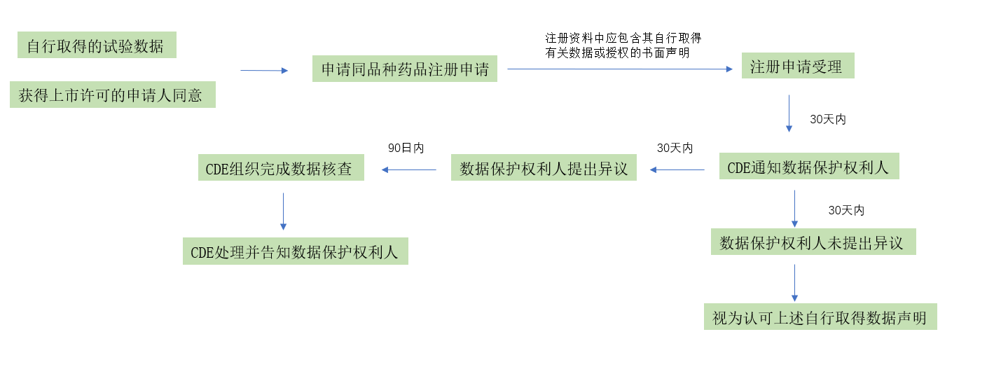 对于保护期内同品种上市申请,《征求意见稿》提出的药品试验数据保护相关流程如下: