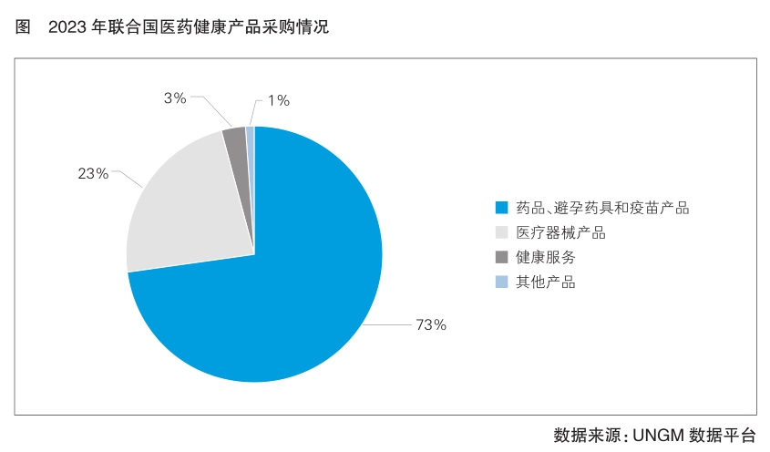 虽然医药健康产品稳居联合国2023年采购品类榜首,但其采购额较新冠疫情时期的需求高峰下降明显,占比已由超50%回落至不足20%。这既是疫情后以防疫物资、新冠疫苗为代表的健康产品需求由激增恢复至常态所致,也是联合国各机构对采购需求进行调整的表现。