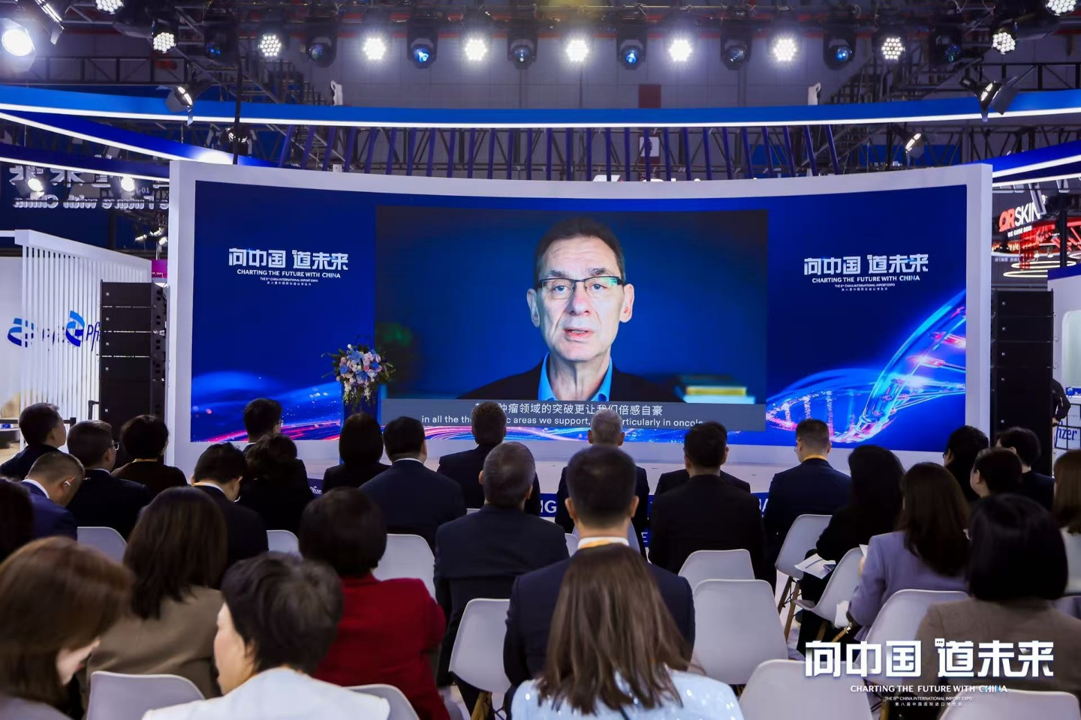 开馆仪式上,辉瑞董事长兼首席执行官艾伯乐(AlbertBourla)、辉瑞首席国际市场商务官兼执行副总裁安卓远(AlexandredeGermay)通过视频致辞,向第八届进博会启幕致以热烈祝贺。艾伯乐(AlbertBourla)表示:“中国是辉瑞全球战略不可或缺的一环。我们深信,唯有依托前沿科学、突破性疗法与广泛合作,才能为患者带来真正意义上的改变。未来,辉瑞将继续与各方携手,不断突破科学与创新的边界,为包括中国患者在内的全球患者带来改变其生活的突破创新。”安卓远(AlexandredeGermay)在视频致辞中进一步阐述了辉瑞在华的战略布局:“辉瑞始终与中国同行并肩,致力于科学进步与患者福祉提升。未来我们将坚持以科学驱动、患者为中心,推进在华10亿美元投资计划,全力支持‘健康中国2030’目标,让更多患者受益于前沿医疗,构建开放可持续创新生态。”