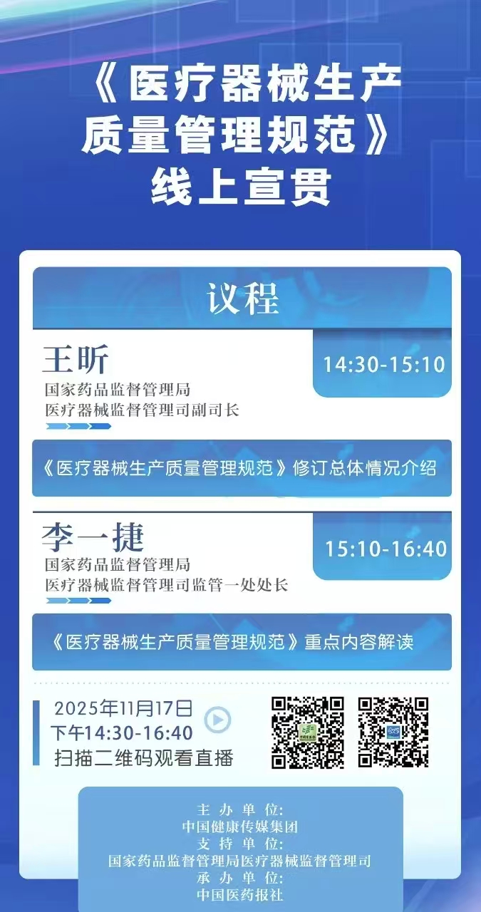直播预告|11月17日《医疗器械生产质量管理规范》线上宣贯