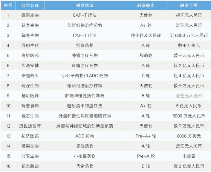2025年11月份16家国内创新药企业完成新一轮融资 ——涉及癌症、自身免疫性疾病等领域