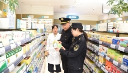 图为1月15日,开封市市场监督管理局示范区分局执法人员在一家药店检查医疗器械质量情况。(通讯员韩吴琦 摄)