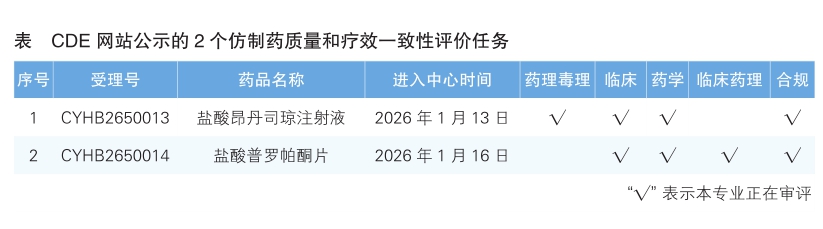 4.CDE网站公示2个仿制药质量和疗效一致性评价任务(详见表),分别为盐酸昂丹司琼注射液和盐酸普罗帕酮片。