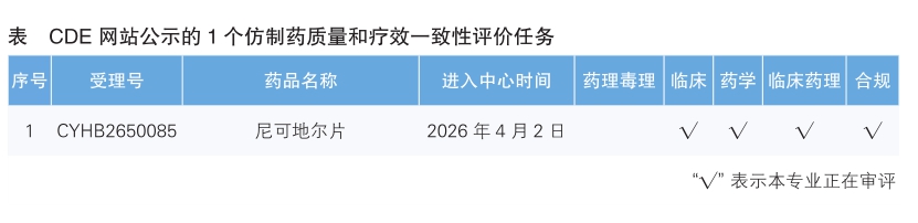 5.CDE网站公示1个仿制药质量和疗效一致性评价任务(详见表),所涉药品为尼可地尔片。