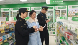 图为4月10日该局执法人员在一家超市检查牙膏的标签标识是否符合要求。(王雨林 王彦君 摄)