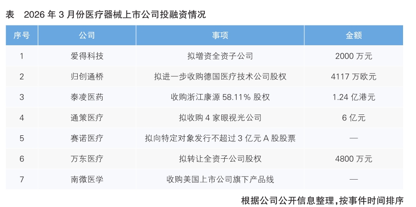 收购优质资产 补齐发展短板——3月份医疗器械上市公司资本流向分析